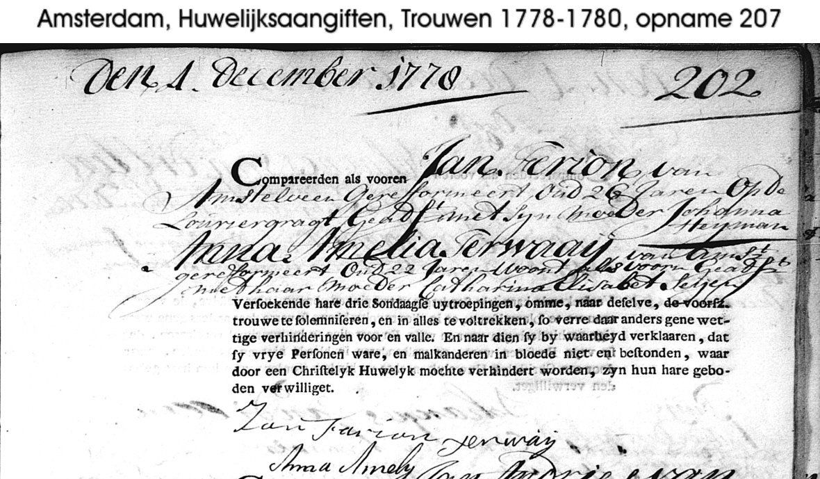Da diese Abbildung einen Beschluss aus dem Jahr 1795 zeigt kann es sich bei dem genannten Jan nur um Jan Farjon, geboren in 1752, Ehemann von Anna Amelia Terwaaij handeln.