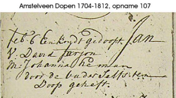 Jan Farjon war der Sohn von David Farjon Jr. und Johanna Heman. Er wurde am 06.02.1752 in Amstelveen getauft. Er hatte sieben Brüder und Schwestern, von denen aber mindestens zwei schon gestorben waren als er geboren wurde.