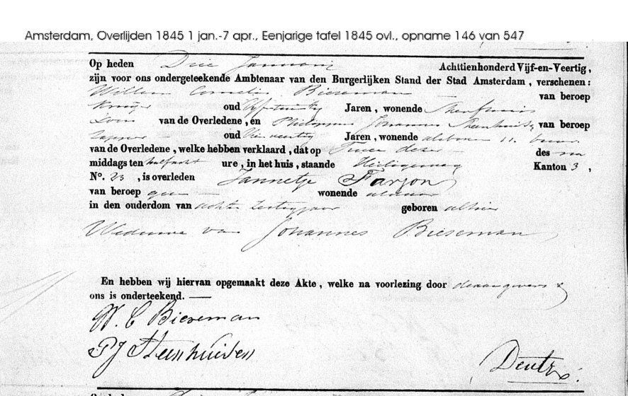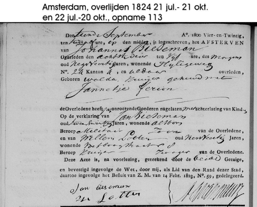 Am 08.09.1824 stirbt Johannes Bieseman, verheiratet mit Jannetje Farjon: