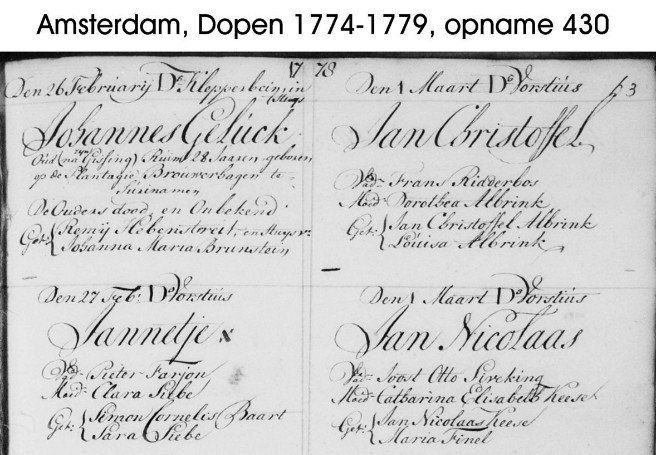 Sie wurde am 27.02.1778 in Amsterdam, Lutherse Kerk, getauft: