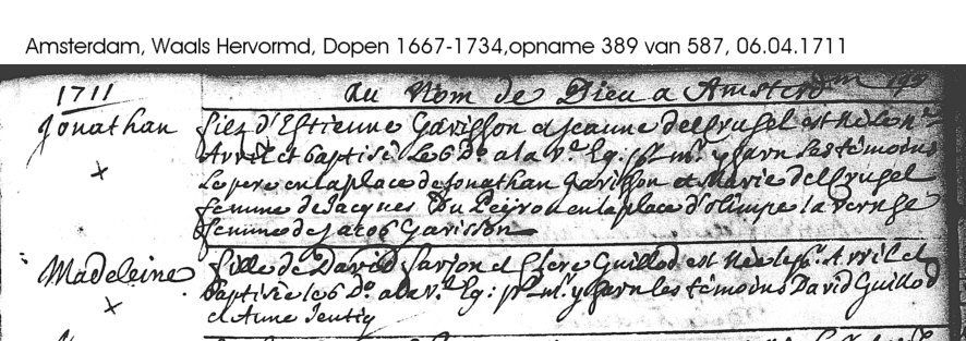 Madeleine Farjon, die oft auch Magdalena genannt wird, ist am 01.04.1811 in Amsterdam geboren und wurde am 06.04.1811 getauft: