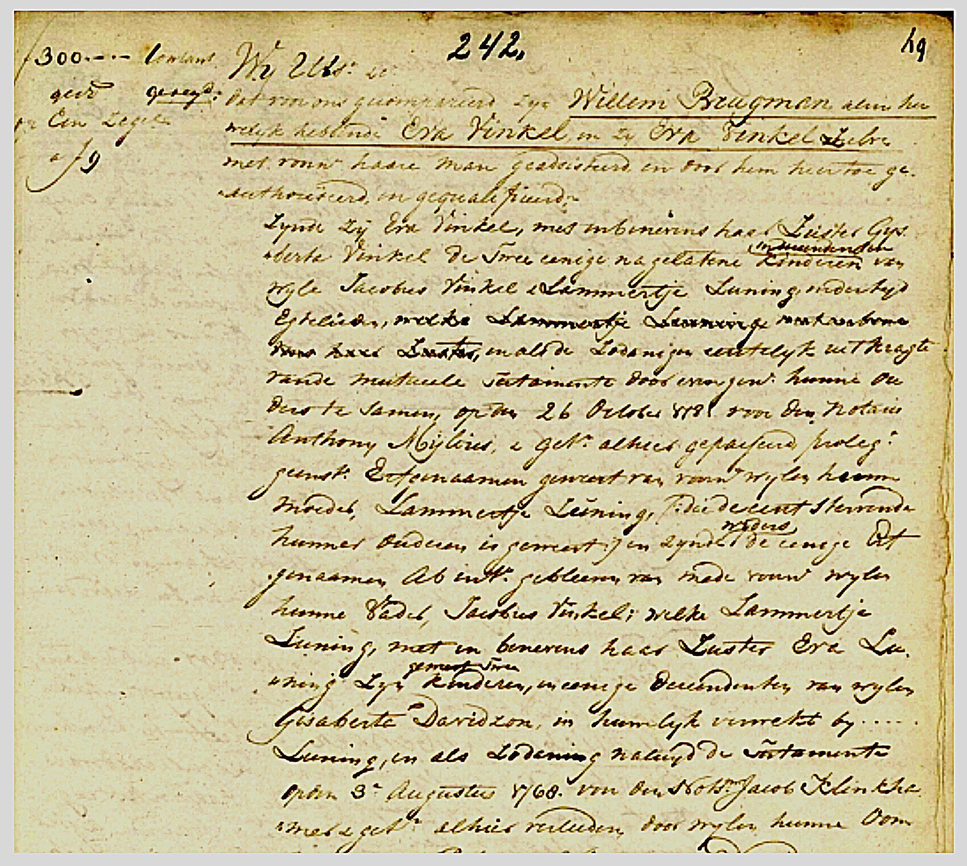 Diese Lammertje Luning und ihre Schwester Eva sind die einzigen Nachkommen ihrer Mutter Gisaberte Davidzon und ihrem Vater xxx Luning und laut Testament vom 3. August 1768 die Erben. Gisabertes Bruder Patricus Wilhelmus Davidzon hat als „Hausfrau“ Magdalena Farjon. Diese beiden waren zu einem Viertel Mit-Erben von Gisaberte.