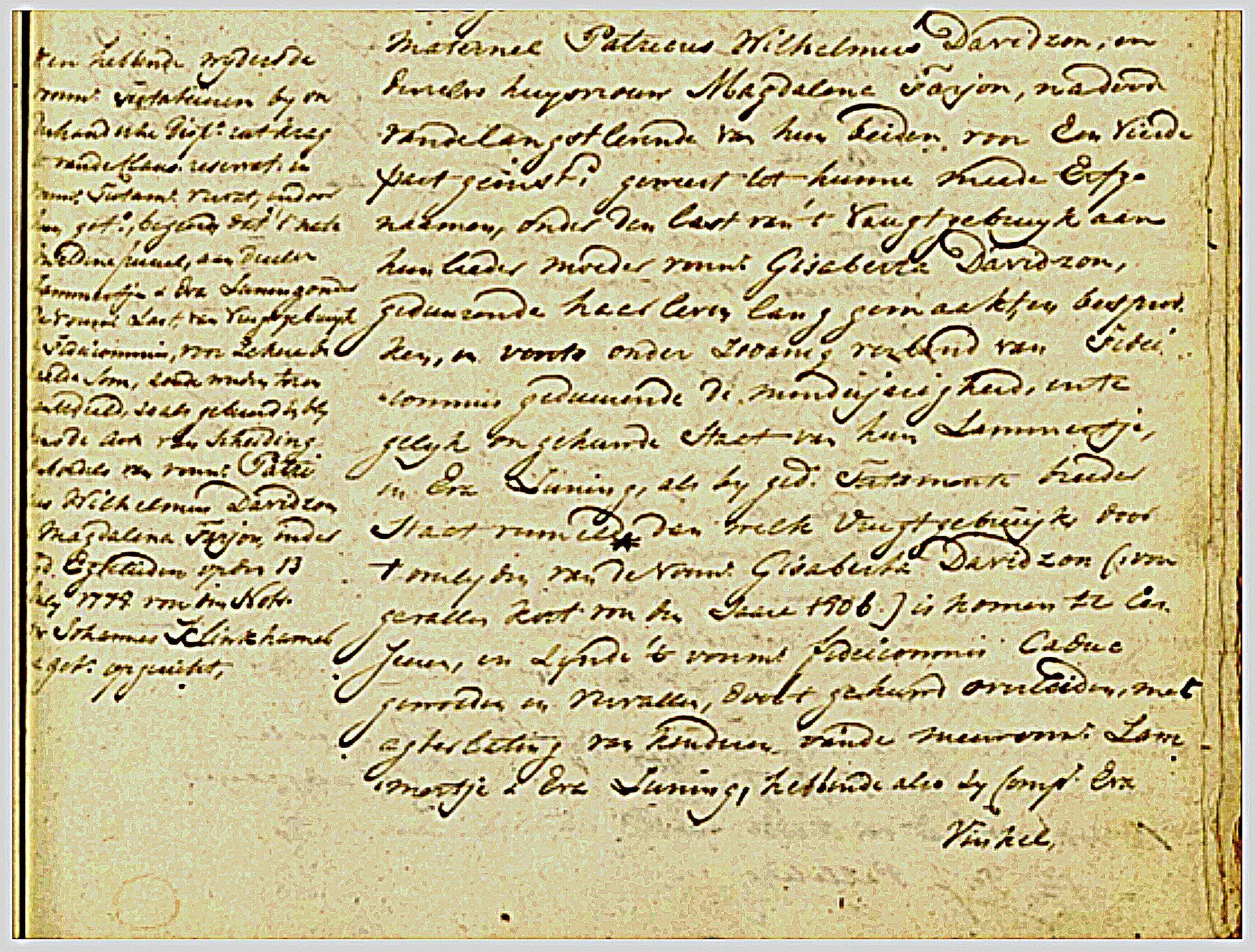 Madeleine heiratete am 12. Juli 1768 Patricus Wilhelmsz. Davidson. Das folgende Dokument führte zur Entdeckung der weiteren Informationen über diese Ehe:
