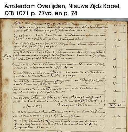 Am 07.04.1732 wird Elisabet Lanting in Amsterdam auf dem Friedhof Nieuwezijds Kapel begraben: