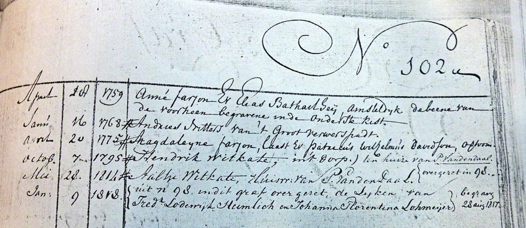 Andries wurde am 16.01.1768 in Amstelveen beigesetzt.