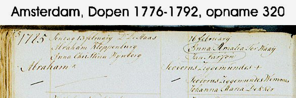 Auffällig ist, dass die Großeltern nicht als Taufzeugen gewählt wurden. Von David, dem Großvater, wissen wir, dass er 1755 auf der Seereise nach Ost-Indien gestorben ist. Auch die Großmutter Johanna Heman tritt nicht als Taufpatin auf, da sie ebenfalls schon gestorben war. Sie wurde am 23.09.1773 in Amsterdam begraben.