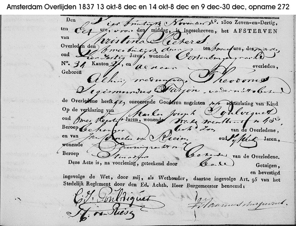 Am 22.11.1837 starb Christina Pieters in Amsterdam: